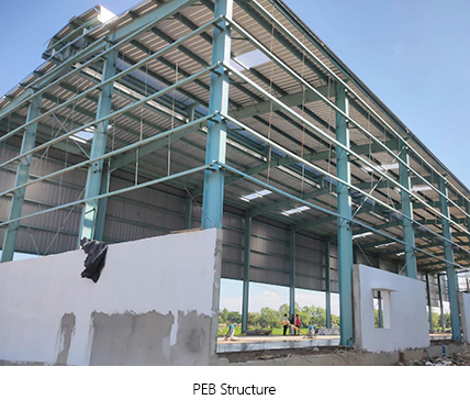 PEB applications : Factory buildings, Logistical Units, Warehouses, Food & Beverage Facilities, Shipyards, Community Halls, Schools & Colleges, Parking Shed, Railway platform, Airports, Showrooms, Cold Storage and Multi-storied Buildings, etc.